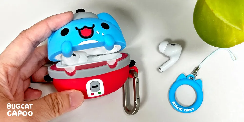 *顏色因電腦螢幕解析度的不同,會與實體商品顏色稍有落差,請以實體商品顏色為主*要求完美者請勿下單*彩盒包裝盒部份瑕疵不做退換貨,在意者請勿下單!咖波造型耳機保護套電鍋造型萌翻上市加厚設計更可保護耳機,規格適用於AirPods Pro 1&2代超萌造型採矽膠材質細緻保護耳機,附上精巧的手指扣環&金屬扣環無需摘套即可充電(支援有線充電)尺寸:耳機套約8.7x4.8x7.7cm 指環扣約3.5x3.5x0.5cm 金屬環扣約4.6x2.5x0.4cm